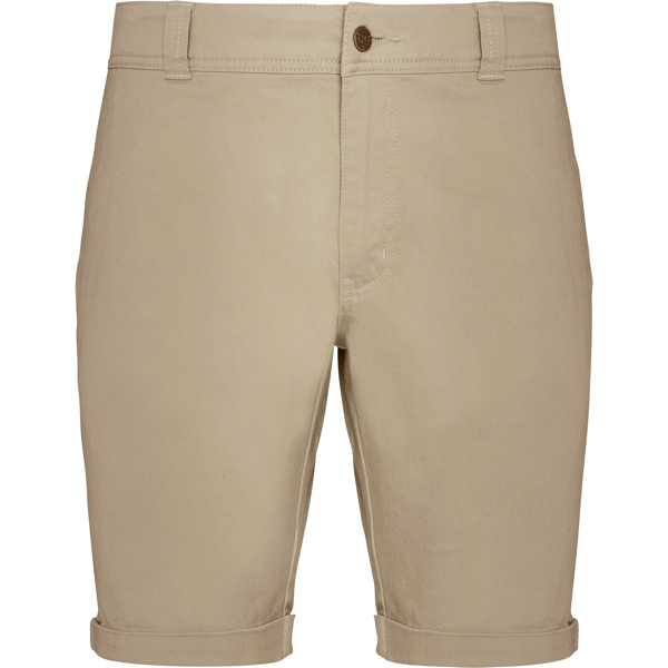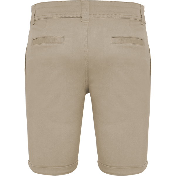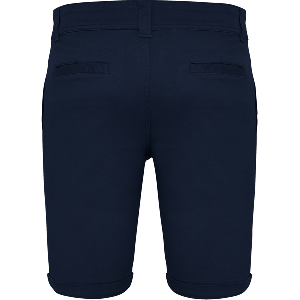 Short in tessuto elasticizzato. · Cintura in vita con 5 passanti. · Due tasche laterali a filetto lungo la cucitura. · Due tasche posteriori a filetto. · Orlo decorativo con cuciture rinforzate. · Etichetta Roly WRK esterna.