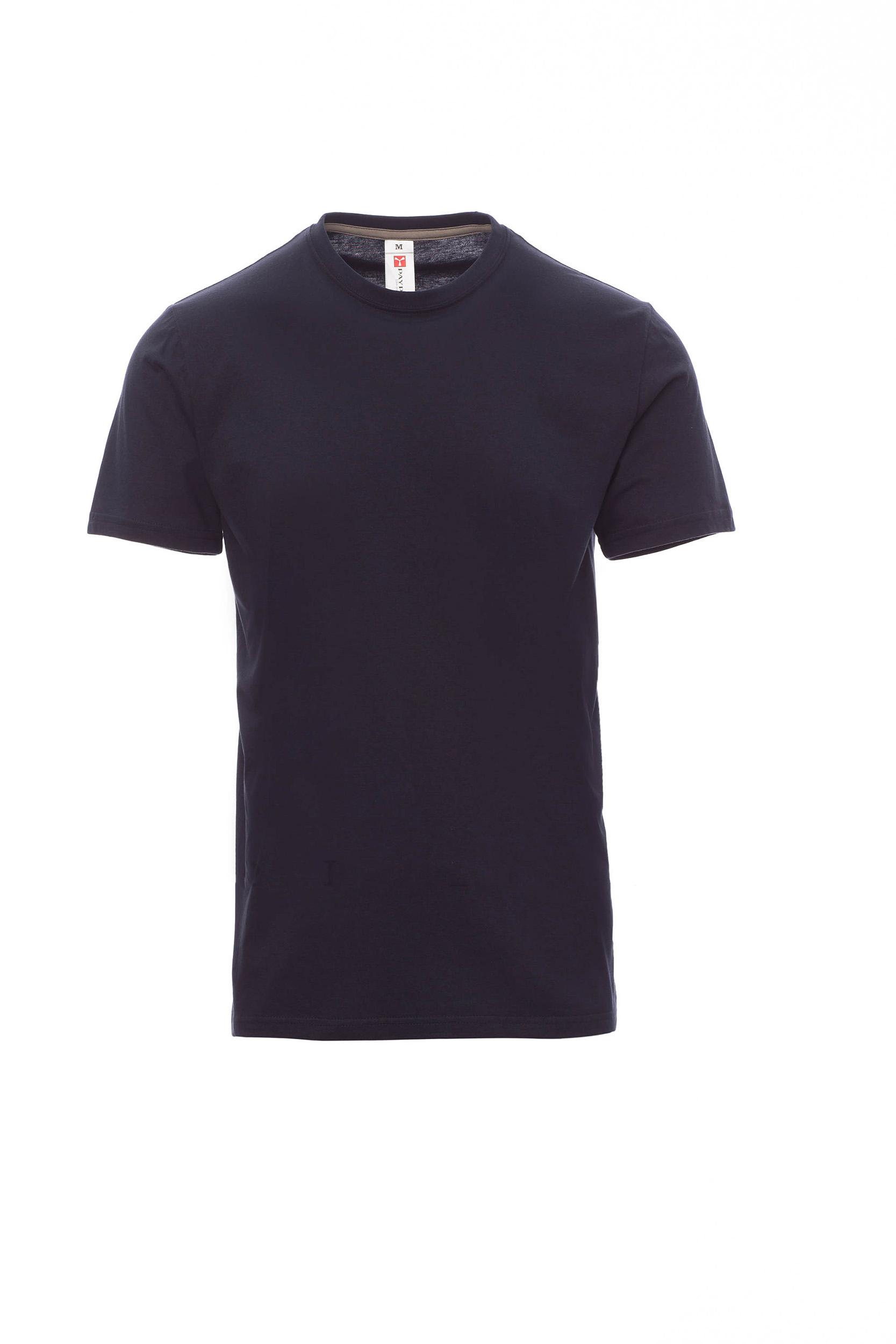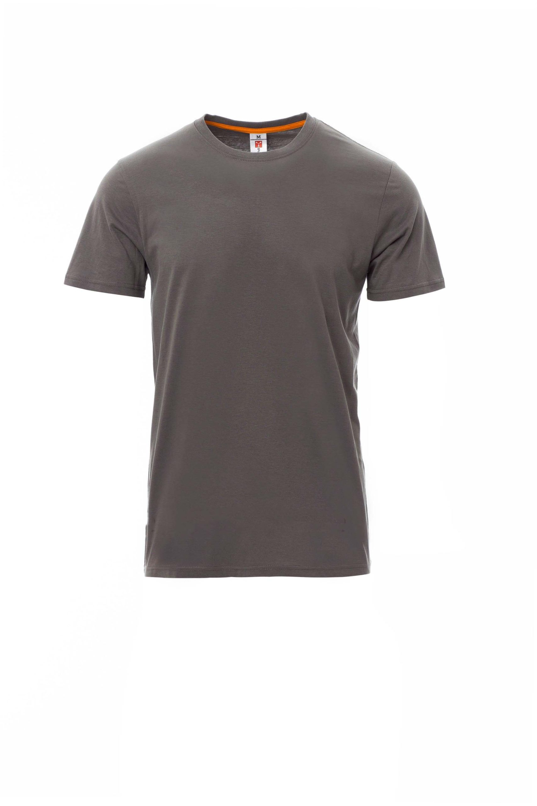 T-shirt girocollo da uomo a maniche corte, con collo a costine in misto spandex da 1,5 cm con impunture sul davanti, nastro di rinforzo da spalla a spalla a contrasto visibile sul colletto interno, cuciture elastiche, design tubolare.