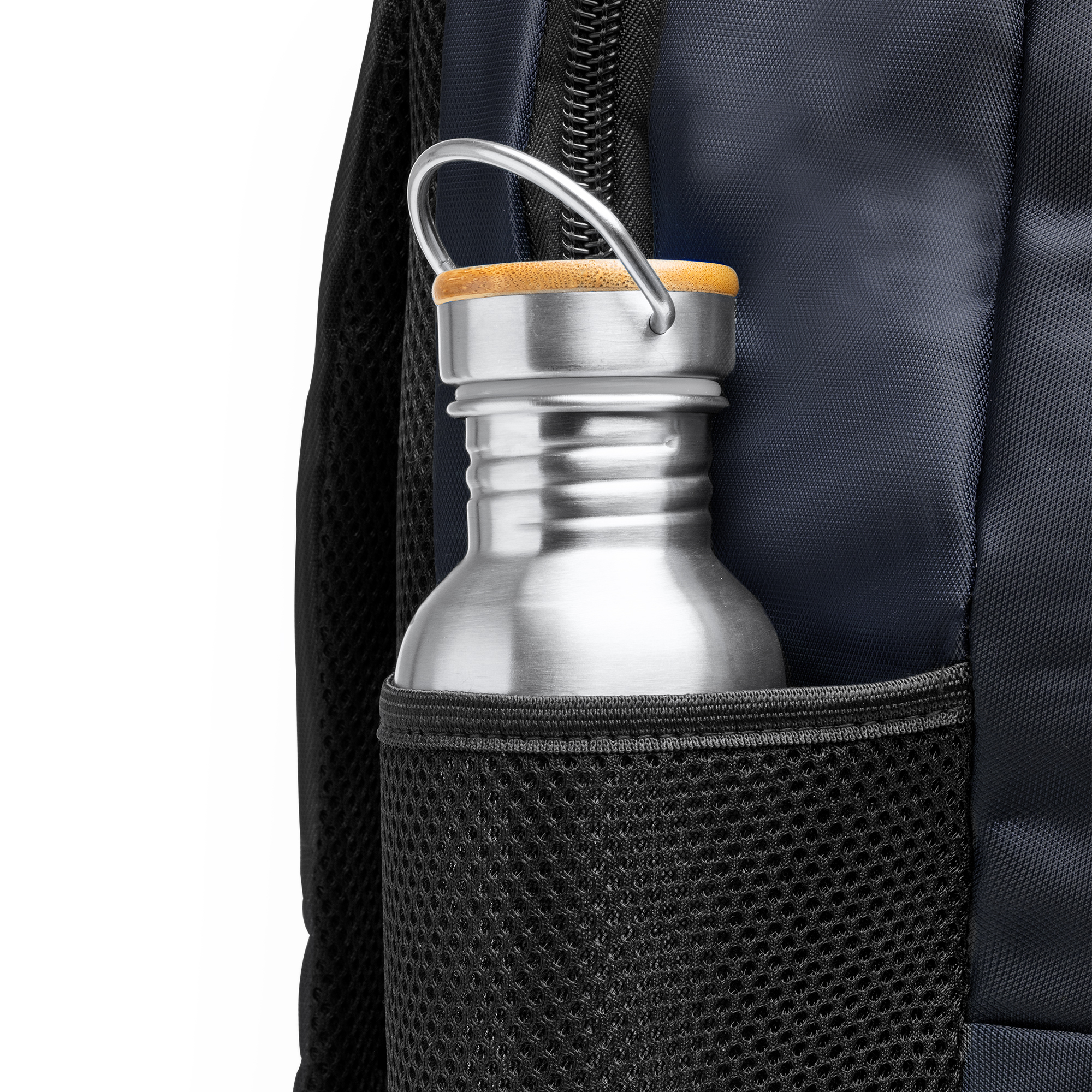 Zaino realizzato in nylon 600D. Spallacci e schiena imbottiti. Include uno scomparto interno imbottito ideale per il computer portatile.